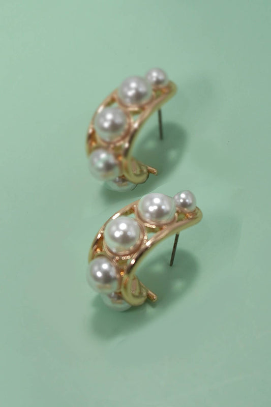 TRIPLE ROW WIRE PEARL HOOP EARRINGS