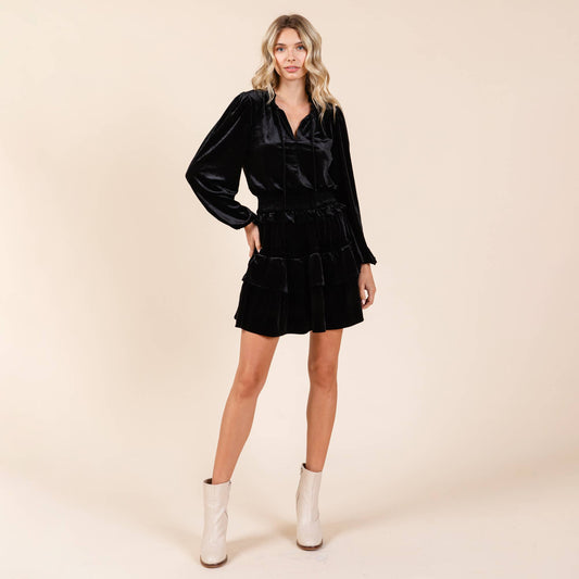 Vallery V-neck Ruffle Sleeve Pleated Dress
