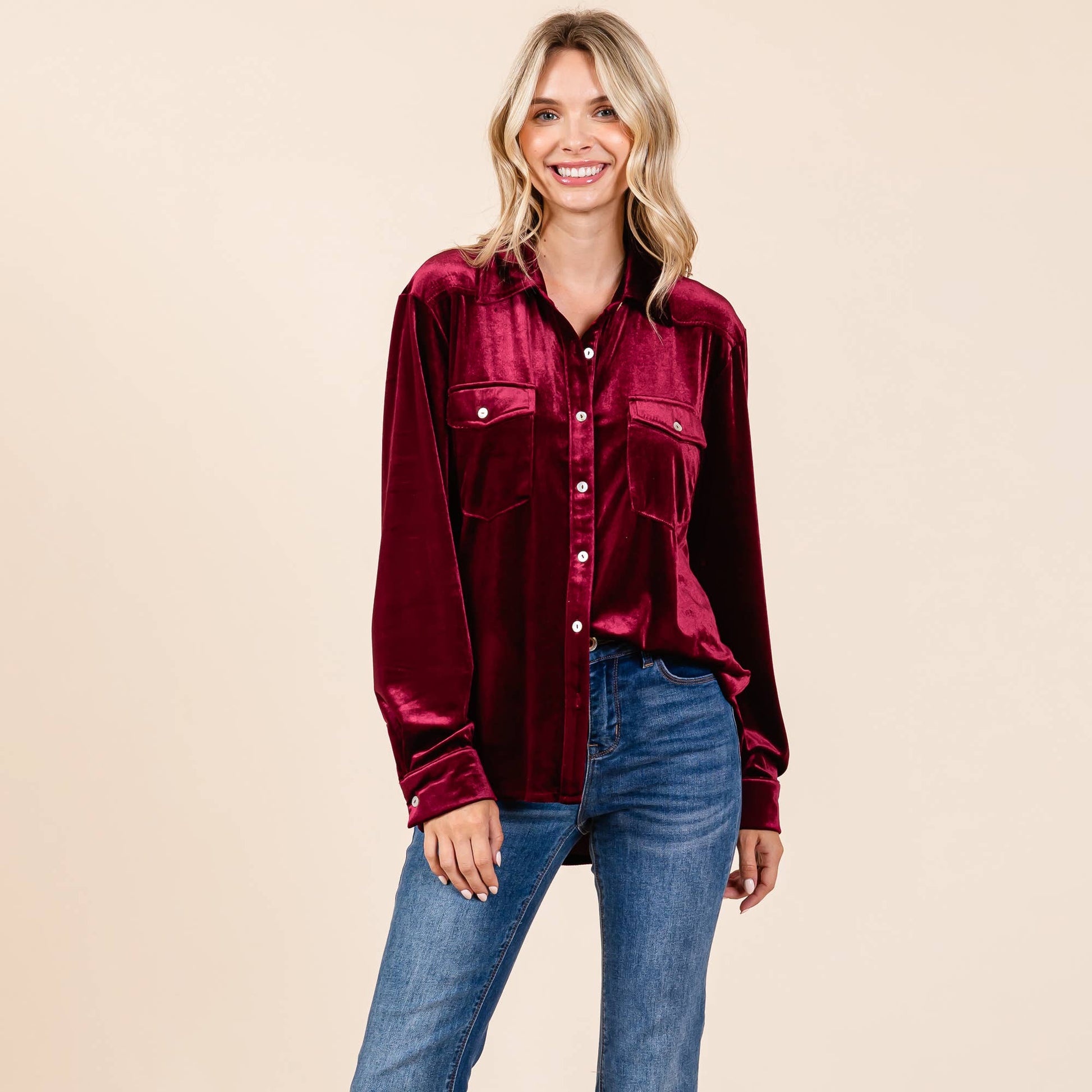 Christy Collared Velvet Blouse