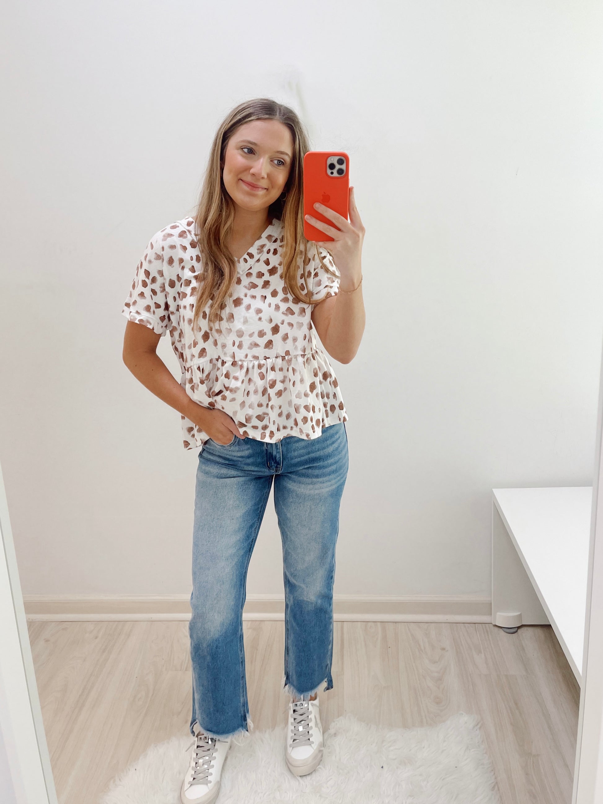 These high-rise, regular-fit jeans come with a frayed hemline, medium wash, and hit just at the ankle.
